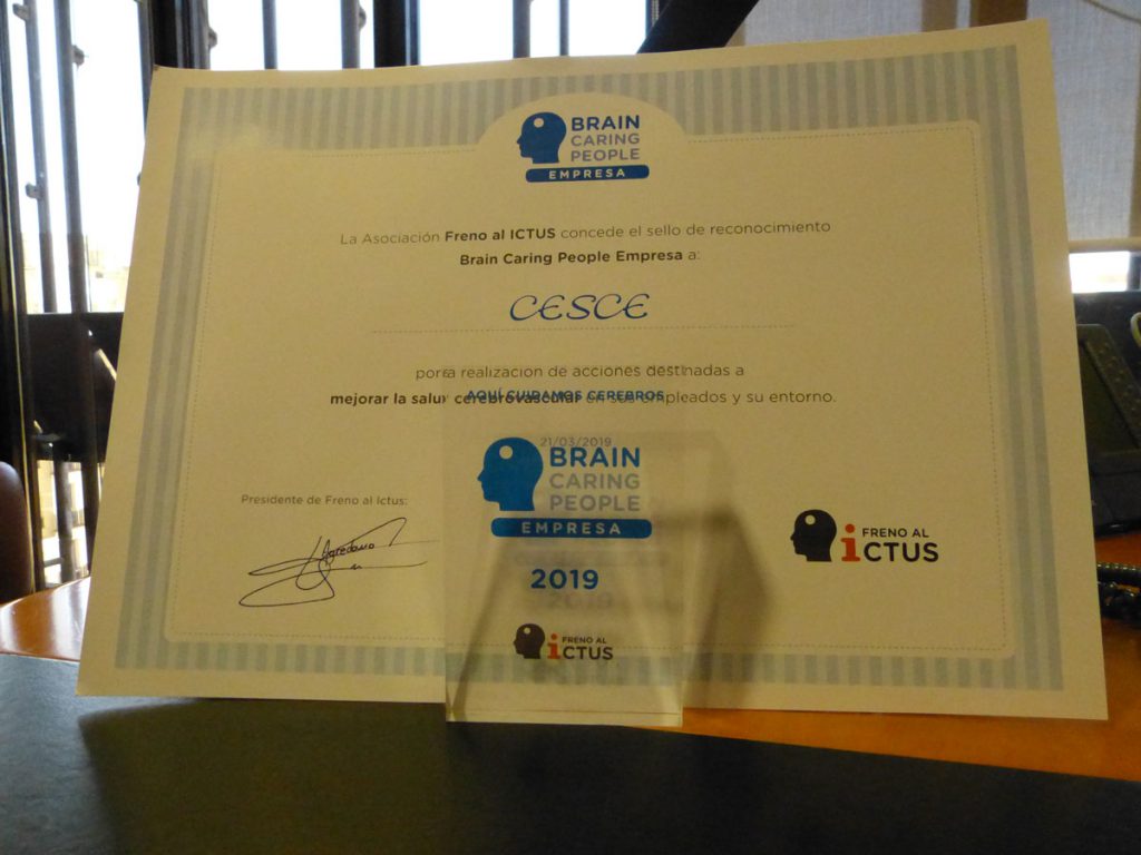 CESCE recibe el sello ?Brain Caring People Empresa? de la Asociación Freno al Ictus por su apoyo a la prevención de esta enfermedad